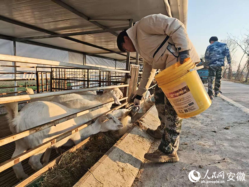 磨砺站里的筹议生们正在喂羊,将表面与践诺采集首。东谈主民网记者 陈若天摄