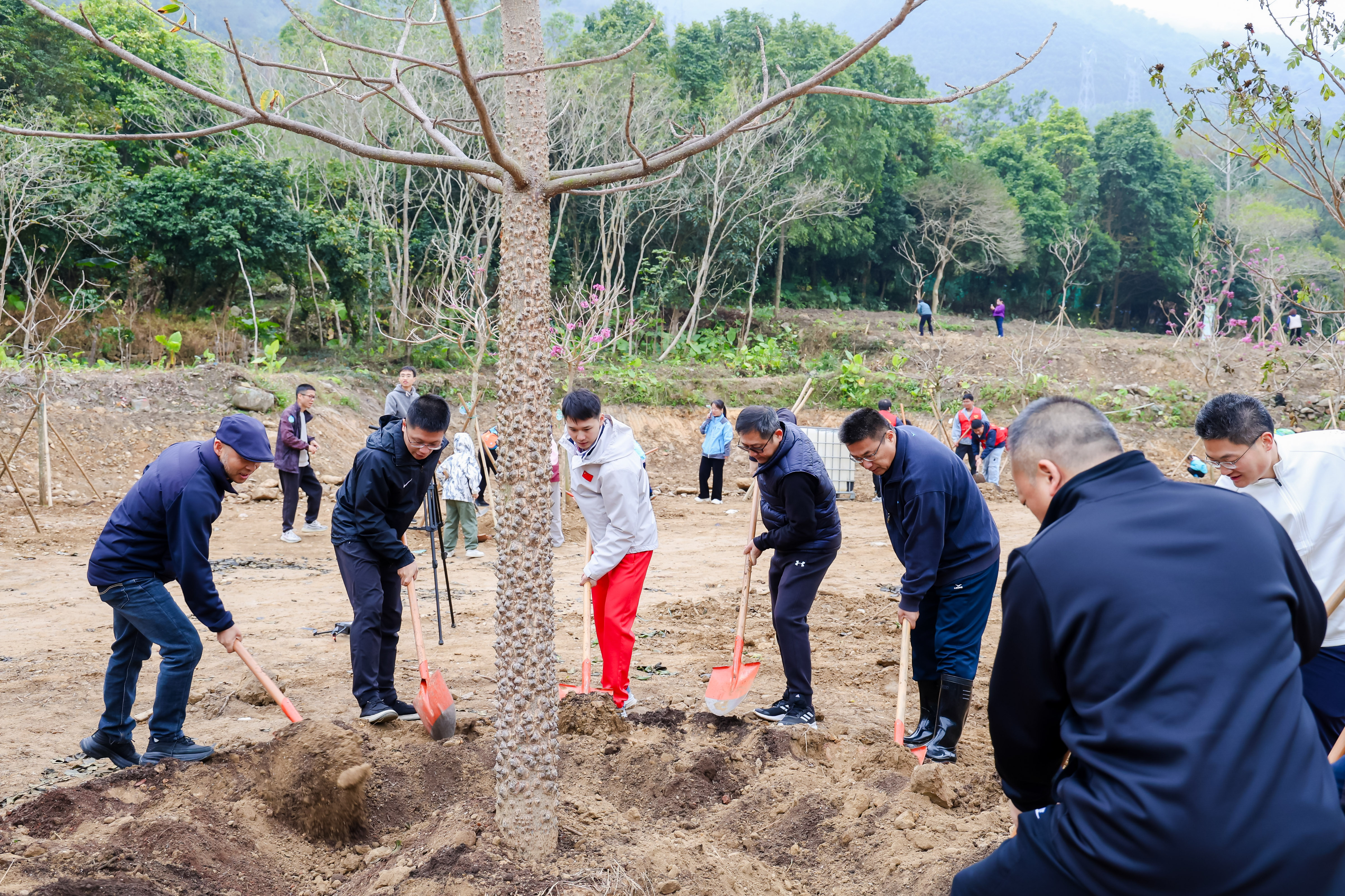 植树现场暖意融融、劲头扫数。陈艾森与参与者们连忙分组伙同,挥锹铲土、扶苗定根、踩实培土、浇水灌溉,每一个才智齐作念得精细圭表。这次共种下木棉、火焰木、凤凰木、铁冬青、东谈主颜面等乔木以及茶花等灌木共300余株。新栽的苗木杂沓有致、春意盎然,不仅为义务植树基地增添了一抹新绿,更传承了肇庆行为“岳山造林”光荣传统着手地的绿色职责,让植绿护绿的理念在实施中落地生根。