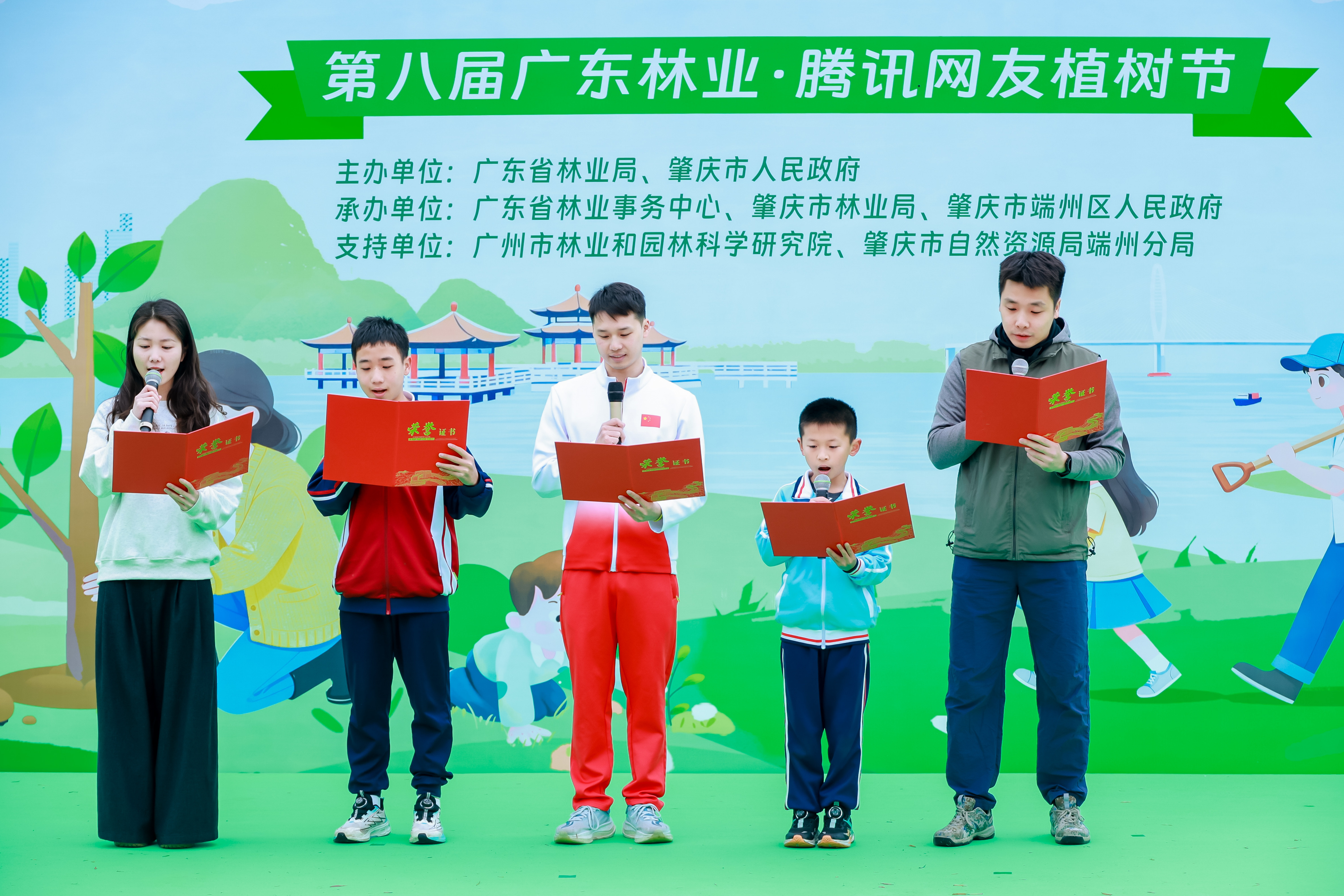 奥运冠军陈艾森和网友代表宣读“我为绿好意思广东种棵树”倡议书