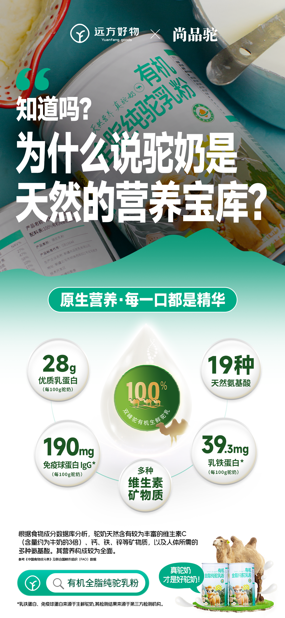 新疆尚品驼乳有限公司工场坐落于北屯市经济开发园区,是一家集生鲜骆驼乳研发、出产、销售为一体的当代科技企业,坐拥丰富的双峰驼种群资源,坚捏“好奶源栽种好产物”,坚守原生态、零添加、更簇新的品性得意,严格把控全产业链质地,出产的驼奶100%取舍双峰驼有机生鲜乳,富含38种养分元素,现在,企业占地30余亩,日产驼奶20吨,年产驼奶6000多吨。