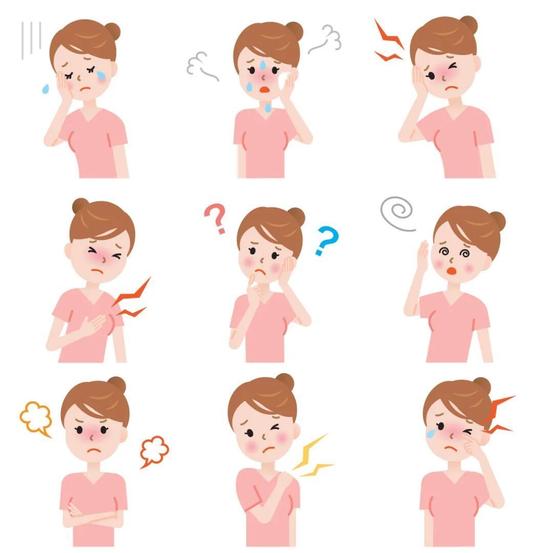 1. 潮热与冷汗:突发的面部、颈部、胸部发烧感,常伴出汗,夜间尤甚